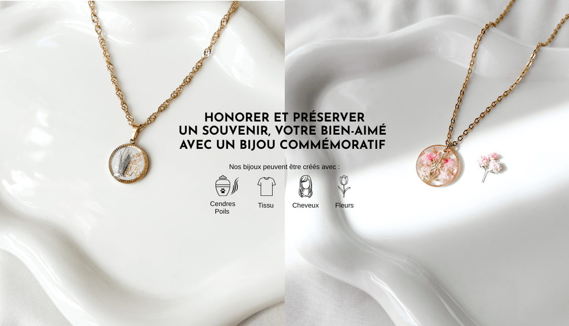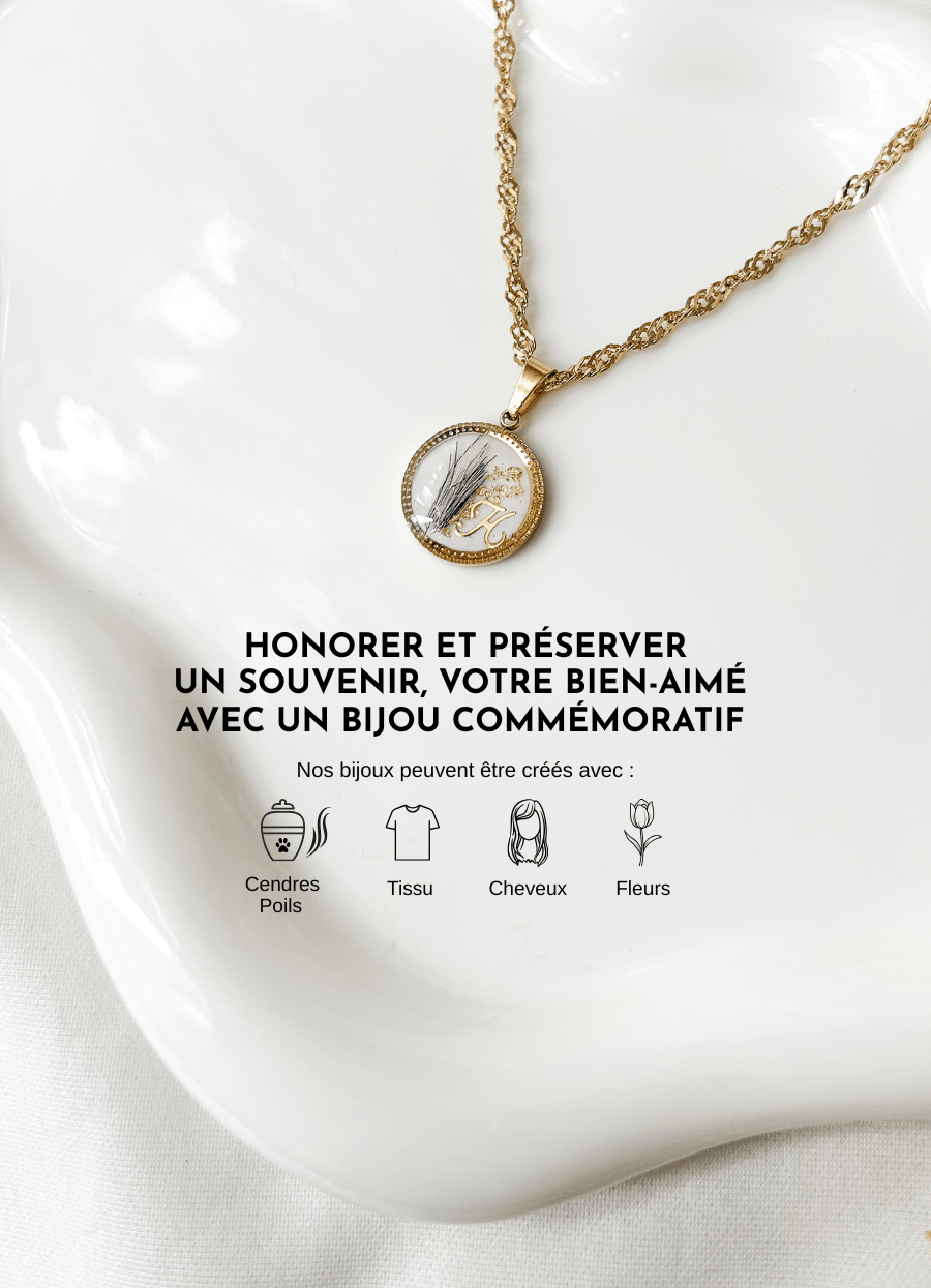 Créez un bijou unique et chargé d'émotion en ajoutant des cheveux, poils ou cendres d'animaux. Gardez près de vous ceux qui ont partagé votre vie